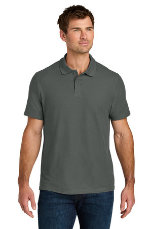 5.2-ounce, 100% ring spun cotton 90/10 ring spun cotton/poly (Ring Spun Sport Grey) Rolled forward shoulders Clean-finished placket Dyed-to-match buttons Modern classic fit, side seamed Recycled, high-performing black tear-away label